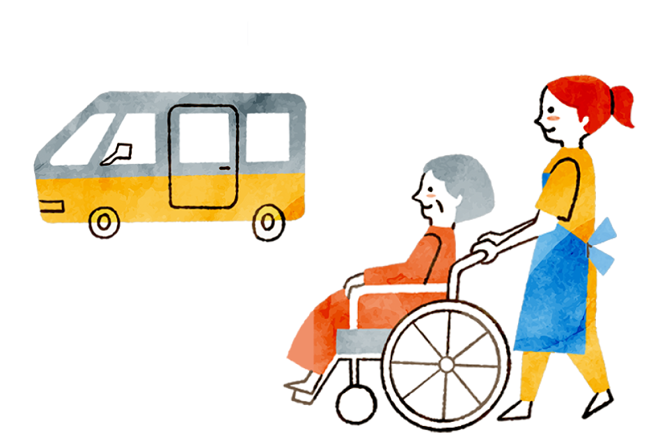 職員が車でご自宅までお迎えに行きます。車椅子対応可能な車輌もございます。