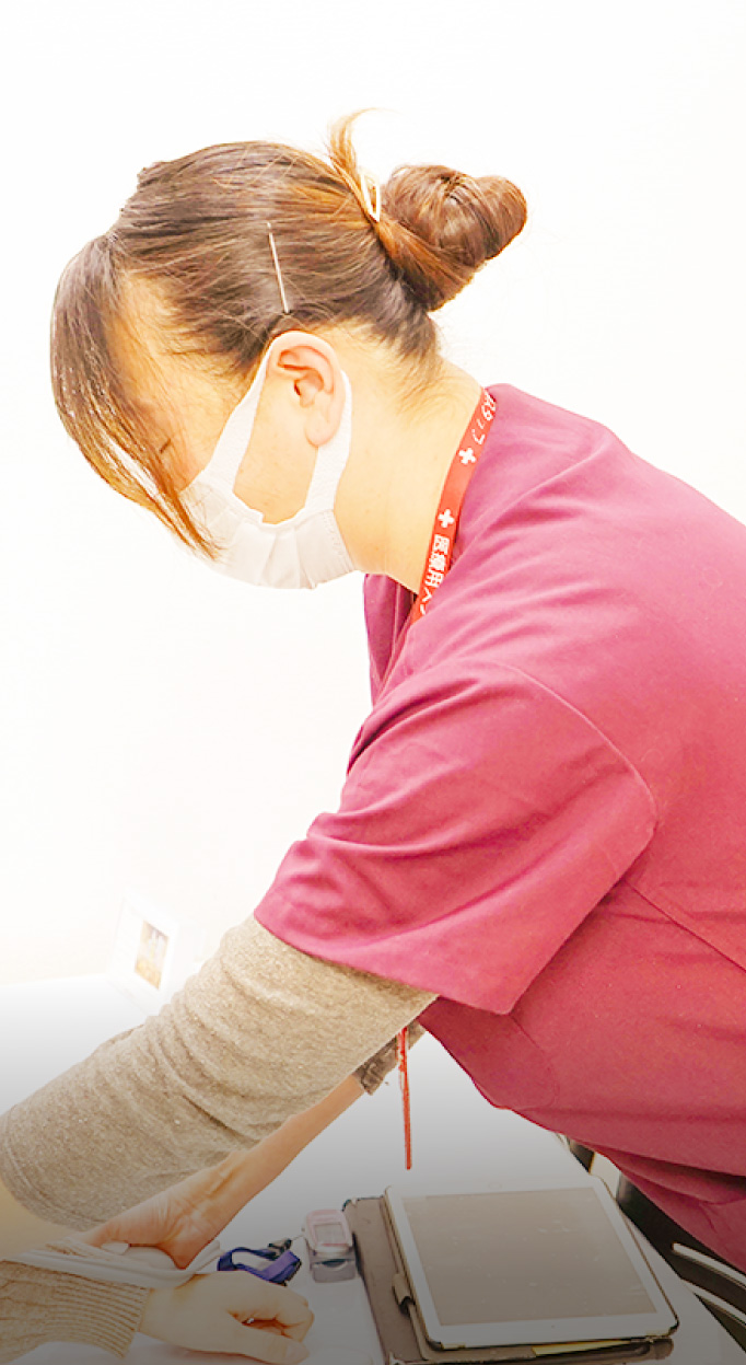 利用者様が到着した際には、看護師による健康状態の確認を行います。身体状態に気になることがあればいつでもご相談いただけます。